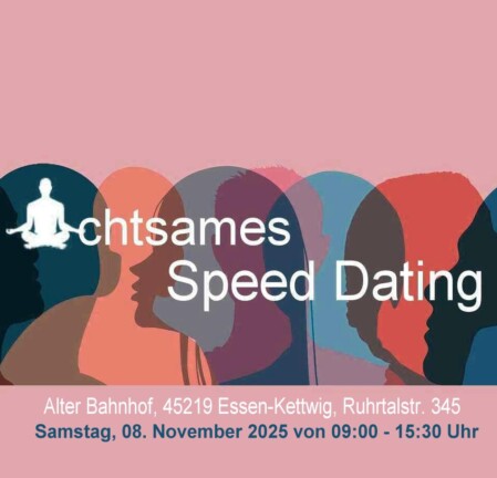 Ein neuartiges Glücksmodell und besondere Achtsamkeitsübungen helfen uns, ganz neutral und absichtslos (ohne Erwartungen) in die 2er-Gespräche zu gehen, ein wichtiges Werkzeug für spätere Beziehungen! Samstag, 08. November 2025 von 09-15:30 Uhr,  hier mehr